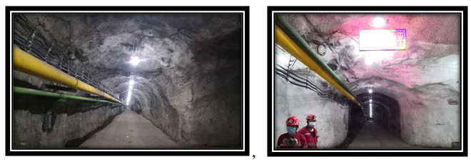 石門巷道風水管線徑直向采場延伸,管線即使在彎道處的安裝也要體現出統一水平。電纜由大到小、管線由粗到細有序排列……